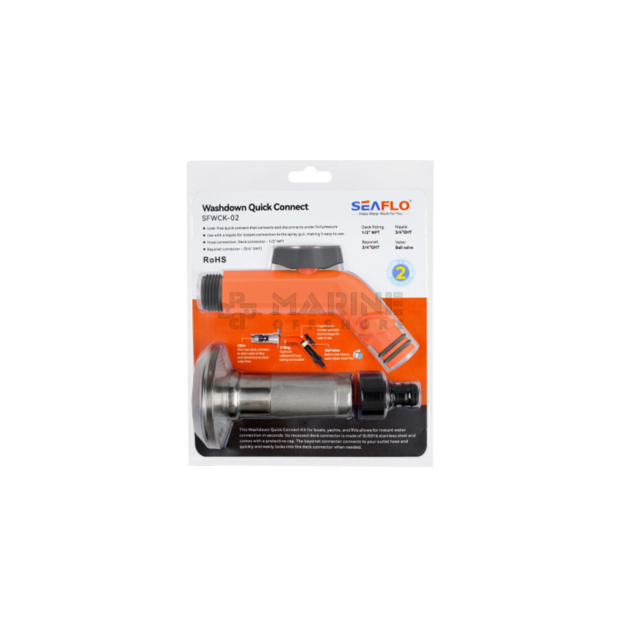 Gebogen Quick Connect Dekaansluiting met Kogelkraan complete Kit, met terugslagklep en 3/4" kraannippel