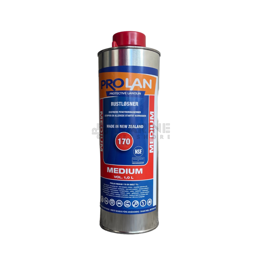 - Prolan medium is zeer geschikt om gevlochten staalkabels en kettingen te smeren. Prolan Medium penetreert tot in de kern, spoelt niet weg, lost roest op, zout water bestendig.